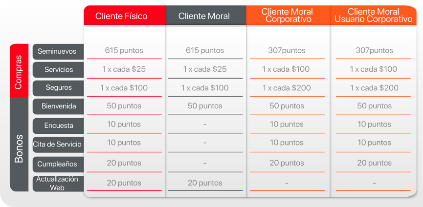 • Los puntos se pueden canjear en cualquier Concesionaria participante.